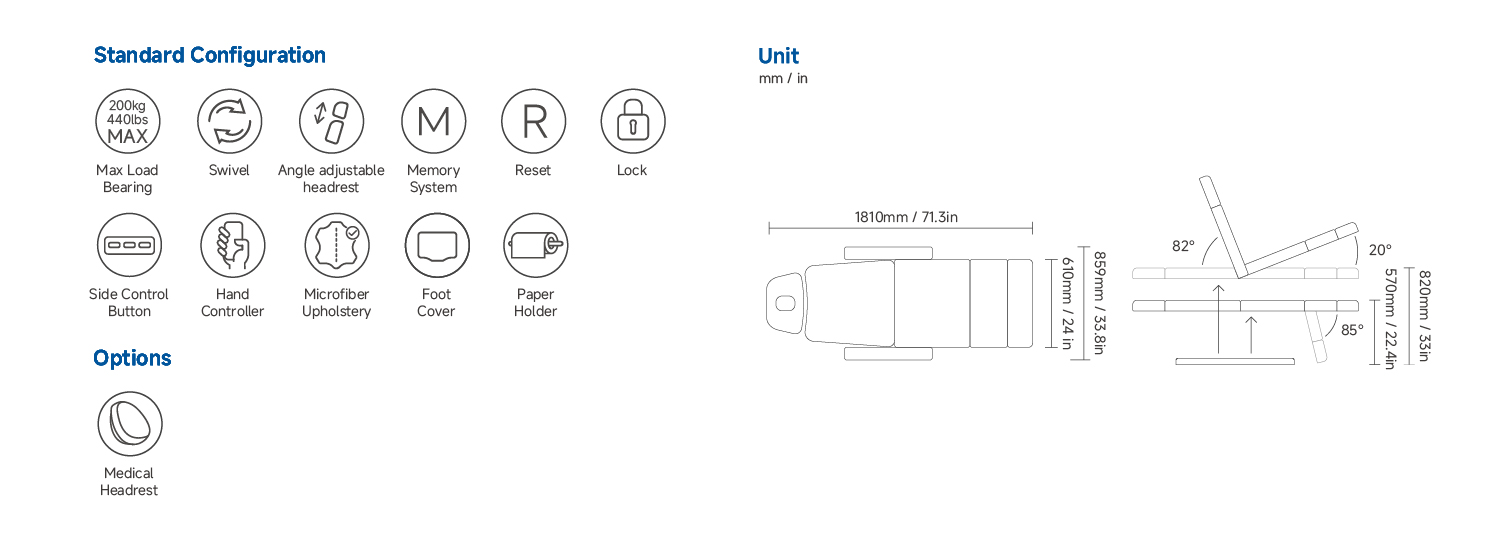 Product size(L*W*H) :1810x859x595(min) ∕ 980(max) mm 71.3x33.9x22.4(min) ∕33(max) in